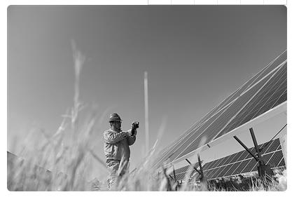 大唐青海能源開發(fā)有限公司工作人員在青海省海南藏族自治州共和縣塔拉灘光伏電站巡檢。記者 張龍 攝